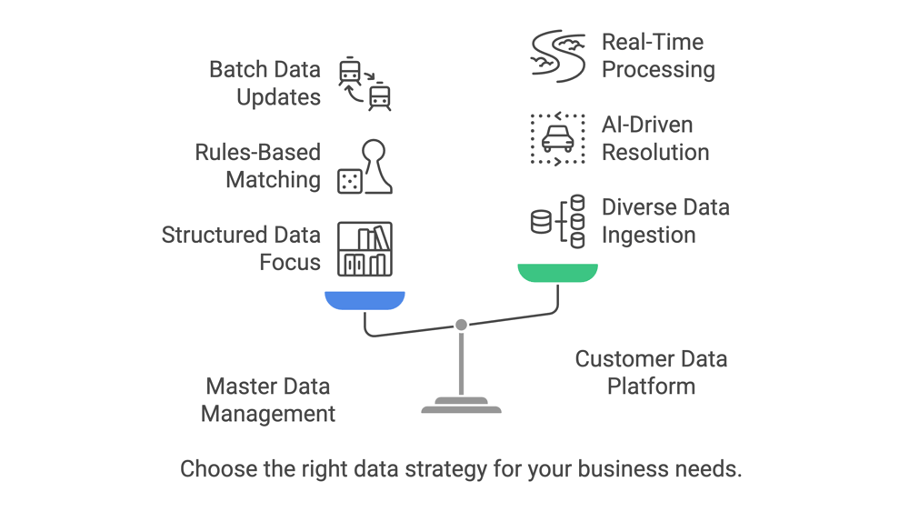 ✔ You require MDM for data governance and CDP for AI-driven customer engagement.